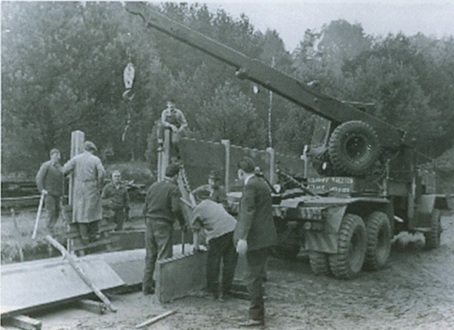 Zu Beginn der 60er Jahre erwies sich der Schießstand für den inzwischen auf 70 Mitglieder angewachsenen Verein als zu klein und entsprach nicht mehr den Sicherheitsbestimmungen. Nach dem 1958 und 1960 die anfangs nur gepachteten Grundstücke gekauft worden waren, baute man 1961 eine kleine Küche und Toiletten und schloss das Schützenhaus ans elektrische Ortsnetz an. Der Umbau des Schießstandes begann 1962 in Fertigbauweise, was sich bei späteren Erweiterungen als sehr vorteilhaft herausstellte. Die guten Kontakte zur amerikanischen Armee waren sehr hilfreich und so konnte auch dieses Bauvorhaben fast ganz in Eigenleistung vollendet werden. Ein neues Darlehen von 8000.- DM mußte aufgenommen werden.m Mai 1963 konnte der Schießbetrieb wieder aufgenommen werden. Auf der 50m Bahn standen zunächst drei automatische Zuganlagen zur Verfügung, eine vierte konnte wenig später auch noch finanziert werden. Ab Herbst schosssen dann auch bis zu 5 Pistolenschützen gleichzeitig auf einer selbstgebauten Anlage.Das Luftgewehrschießen war kurz vorher eingestellt worden und auf der neuen Anlage zunächst nicht möglich.
